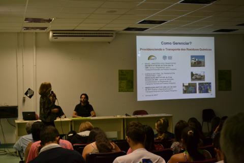 Mais de 200 pessoas estiveram presentes para assistir às palestras, de três dos melhores especialistas do Brasil na área de resíduos químicos e perigosos; a doutora em Química Analítica Maria Cecília Tavares, responsável pelo Laboratório de Resíduos Químicos da USP de São Carlos, a Conselheira do Conselho Regional de Química de Minas Gerais (CRQ-MG), Debora Vallory, que escreveu o livro “Manual para Gestão de Resíduos Químicos Perigosos de Instituições de Ensino e Pesquisa” e o Diretor de Sustentabilidade Ambiental da UFU e também conselheiro do Conselho Regional de Química de Minas Gerais (CRQ II), Dr. Euclídes Honório de Araújo.