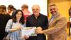 Prefeita Universitária da UFU, Juliana Cardoso Braga, recebendo Selo Ouro ao lado do